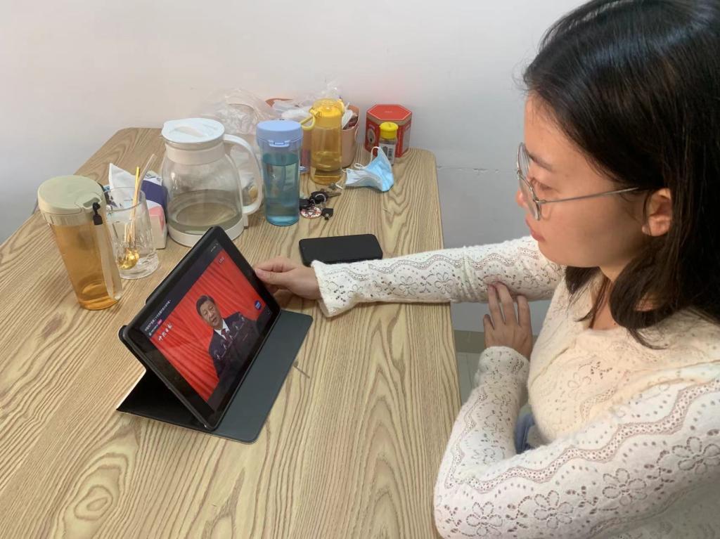 朱康清老师表示:聆听习近平总书记的报告,我受到了极大的鼓舞,认识到作为新时代青年共产党员,应始终坚持听党话、跟党走,与党的步伐始终保持一致,面对百年未有之大变局,要积极响应习近平总书记“踔厉奋发,笃行不殆”的号召,为新时代中国特色社会主义建设和中华民族的伟大复兴尽一份绵薄之力。