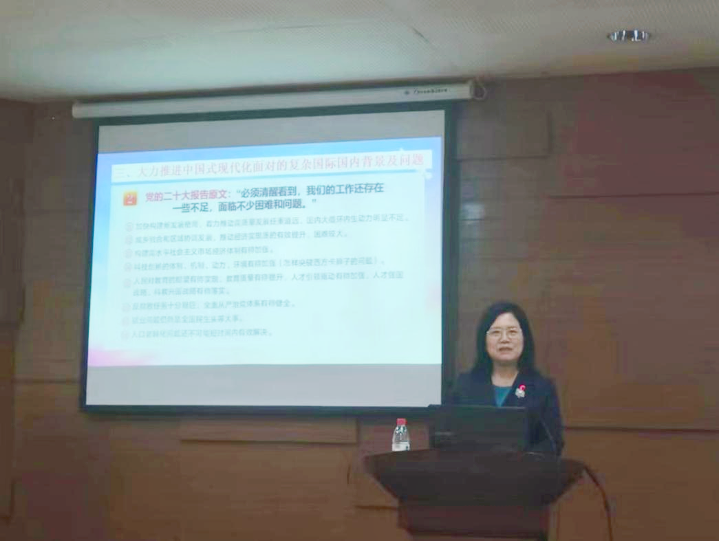 随后刘苍劲教授以美国为例,通过生动具体的史实介绍了美国大打司法牌、科技牌、贸易牌、台湾牌等手段遏制、打压、制裁中国,以此论述中国式现代化面对的复杂国际形势,并结合二十大报告分析了八项国内面临的困难和问题。