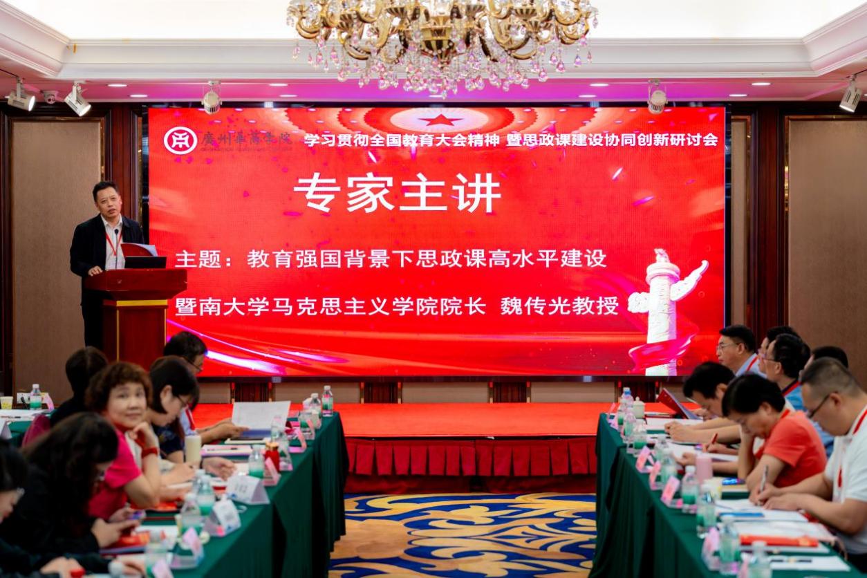2025年4月18日,由广东省高校思政课区域协同创新中心、暨南大学国产亚洲精品日日夜夜主办,广州华商学院国产亚洲精品日日夜夜承办,珠海科技学院、广州华立学院、私立华联学院、潮汕职业技术学院协办的“学习贯彻全国教育大会精神暨思政课建设协同创新研讨会”在广州太阳城大酒店成功举办。广东省内多所院校的专家学者齐聚一堂,围绕思政课建设协同创新与高质量发展展开深入交流和深刻探讨。