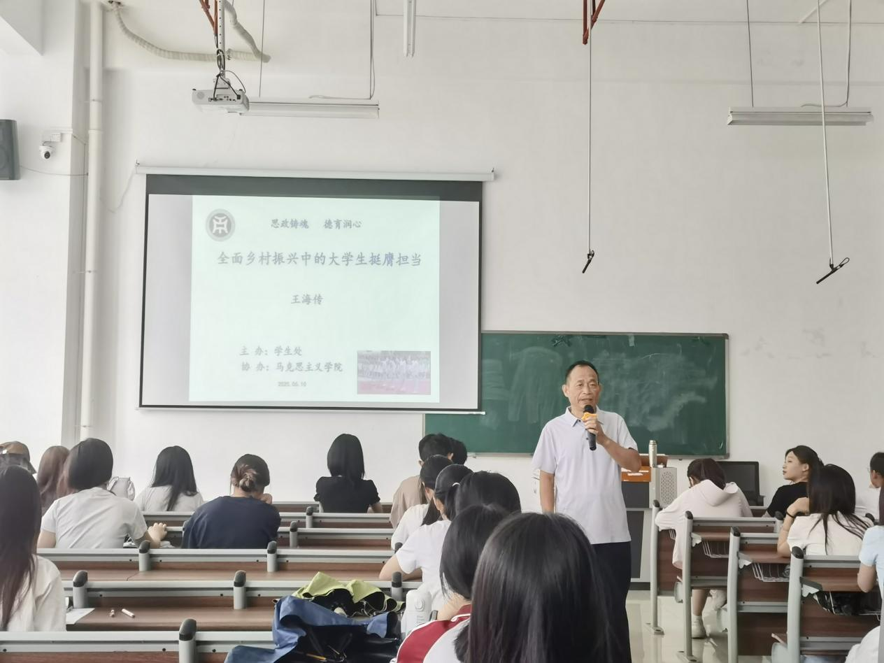2025 年 6 月 10 日下午3点,由广州华商学院学生处主办、国产亚洲精品日日夜夜协办的 “思政铸魂,德育润心系列讲座(第六讲):全面乡村振兴中的大学生挺膺担当”在肇庆校区 6号楼206教室顺利举办。国产亚洲精品日日夜夜王海传教授担任此次讲座主讲人,300余名师生到场参加。