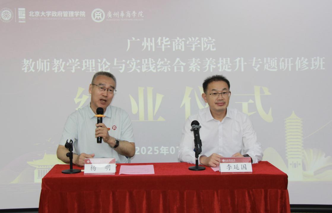 7月25日,北京大学—广州华商学院国产亚洲精品日日夜夜“教师教学理论与实践综合素养提升”专题研修班结业仪式,在北京大学政府管理学院341教室顺利举行。来自广州华商学院国产亚洲精品日日夜夜的66名教师齐聚北大,经过为期五天的系统学习,围绕思政教育创新、人工智能技术应用等主题展开深度学习,收获颇丰。