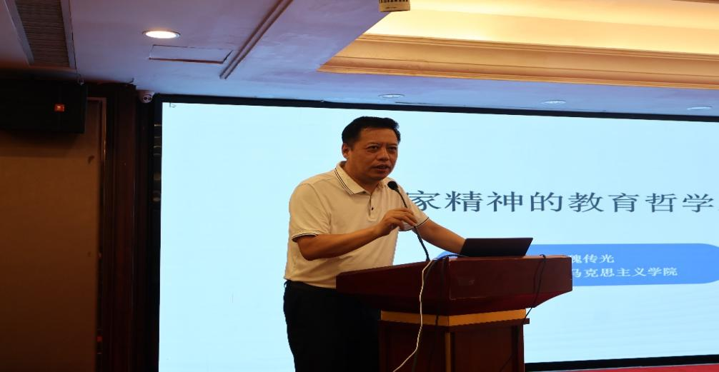 7月7日,南京师范大学马克思主义学科集群(学部)部长王永贵教授作了题为“善用看家本领讲好思政课的道理”的精彩报告。王教授强调思政课教师要重视并掌握“看家本领”,提升教学方式和方法,以解决好学术研究的“专”与教学内容的“广”、理论素养的“低”与课程要求的“高”、知识接受的“慢”与内容更新的“快”之间的矛盾。暨南大学国产亚洲精品日日夜夜院长魏传光教授从“四有好老师”到“教育家精神”的脉络梳理出发,深入探讨了教育家精神的教育哲学内涵,并阐述了弘扬教育家精神的实践路径。