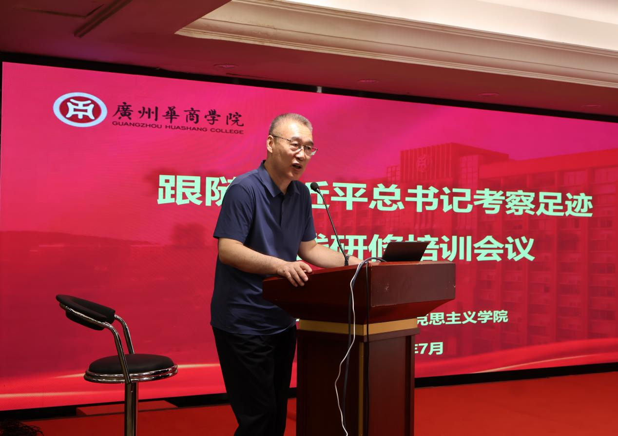 为全面学习贯彻习近平新时代中国特色社会主义思想,克服思政课教师队伍在马克思主义理论功底、历史文化素养、实践经验、教学方法、学情分析等方面的短板,2025年7月7日国产亚洲精品日日夜夜于新塘太阳城酒店举办“跟随习近平总书记考察足迹”的实践研修培训会议开幕式。国产亚洲精品日日夜夜院长杨明教授、党委书记胡立娟副教授、院长助理邹宁军副教授、各教研室主任以及专任教师共计90余人参加了本次活动。