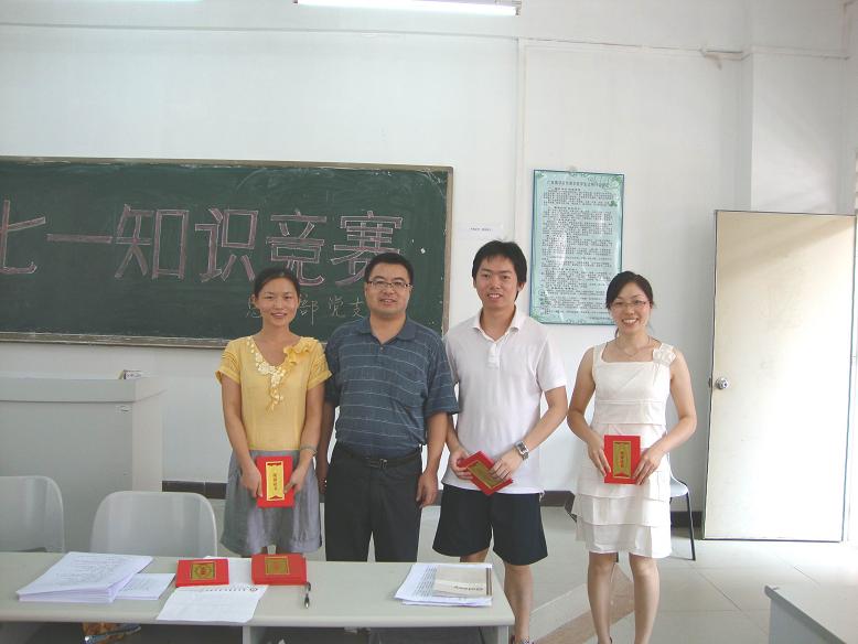 今年七一我们迎来了中国共产党建党89周年。2010年7月6日下午,思想政治理论教学部教工党支部开展了以主题为 “庆七一知识竞赛”等一系列的教育活动。通过活动加强了党支部的自身建设,充分调动了每一位党员的积极性、主动性、创造性,焕发了新的工作活力,把党员的思想和行动统一到教育教学工作上来,发挥了党支部的政治核心作用和党员的先锋模范作用,为学校的发展做贡献、创佳绩。