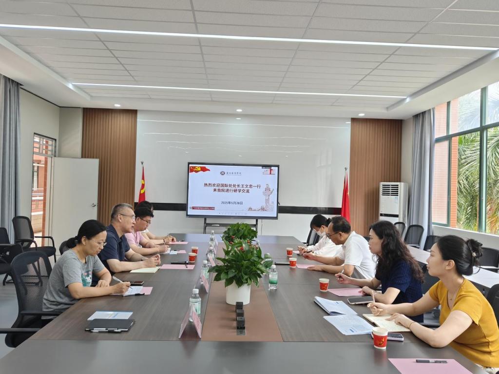 2025年5月28日,国际交流与合作处处长王文忠率国际职业教育发展中心团队到国产亚洲精品日日夜夜开展交流座谈。会议由国产亚洲精品日日夜夜院长杨明主持,双方围绕新时代背景下思政课程的实践教学创新展开深入探讨,共谋融合发展新路径。