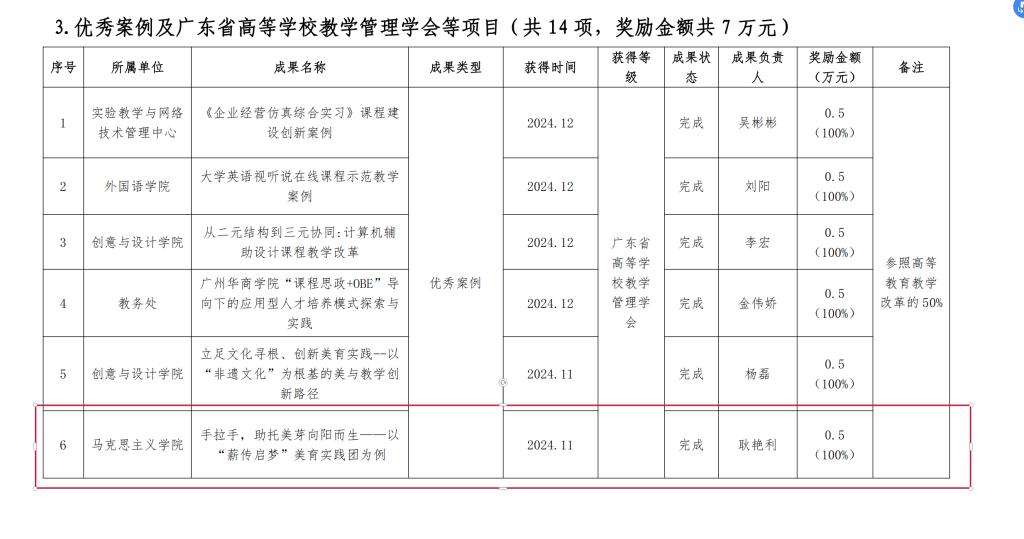 根据《广州华商学院教务处关于2024年度教育教学标志性成果奖励情况的公示》,国产亚洲精品日日夜夜耿艳利教师获得2024年校级“标志性成果”奖励。